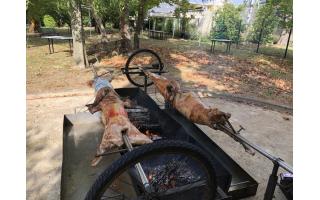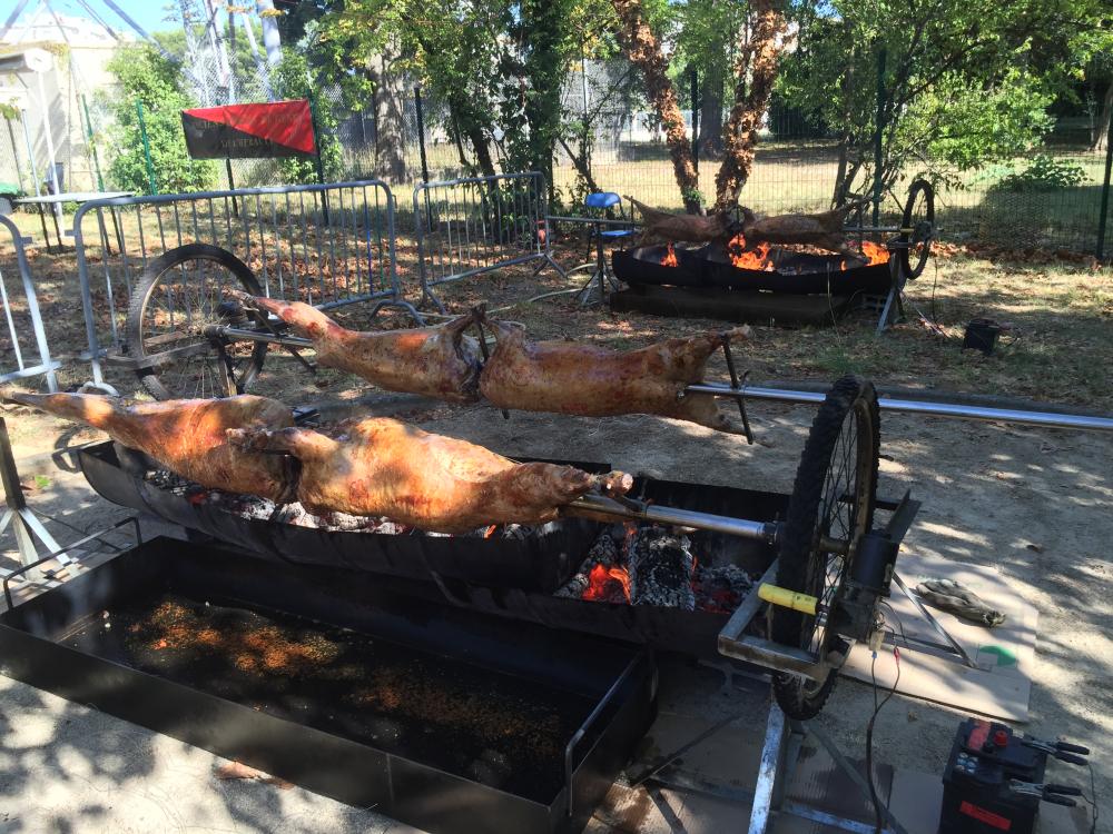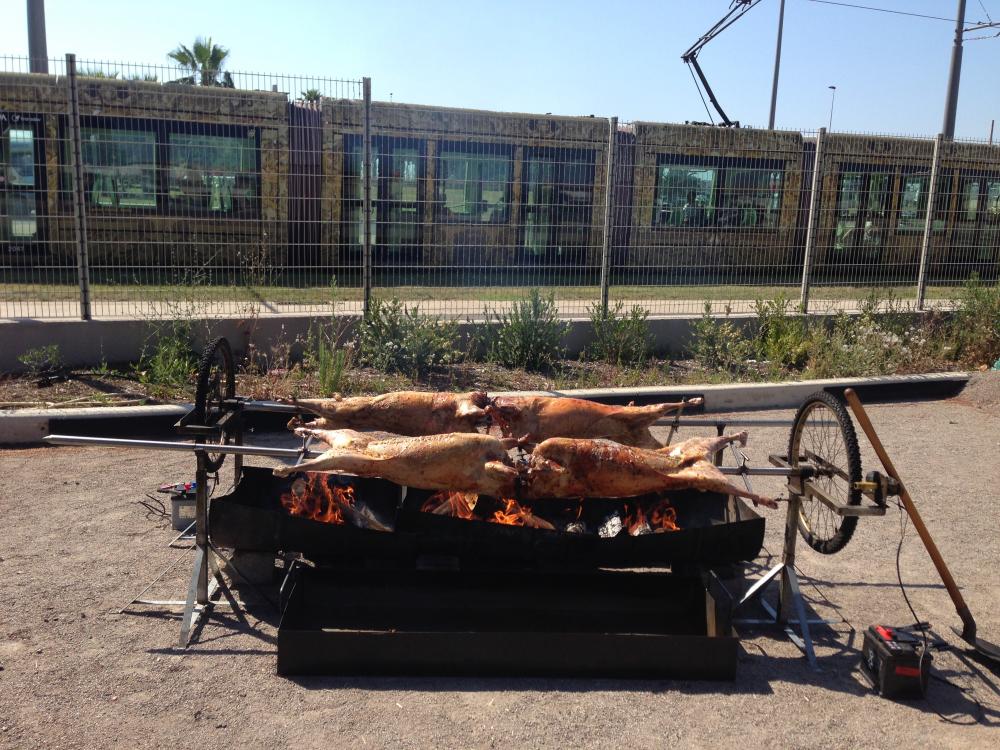 Prestation minimum avec le menu de base brasoucade de moules (500gr/pers) suivi d’un mechoui d’agneau farci ou porcelet à la broche farci à 22,50€* par personne. Nous proposons également de l’agneau Label Rouge Pays d’Oc médaille d’or du salon de l’agriculture à 21€* par personne ou à 25,50€* avec le menu. Pour une prestation Mechoui ou Porcelet uniquement, je demande un minimum de 60 personnes (1 bête pour 30 personnes) à 18€* par personne.